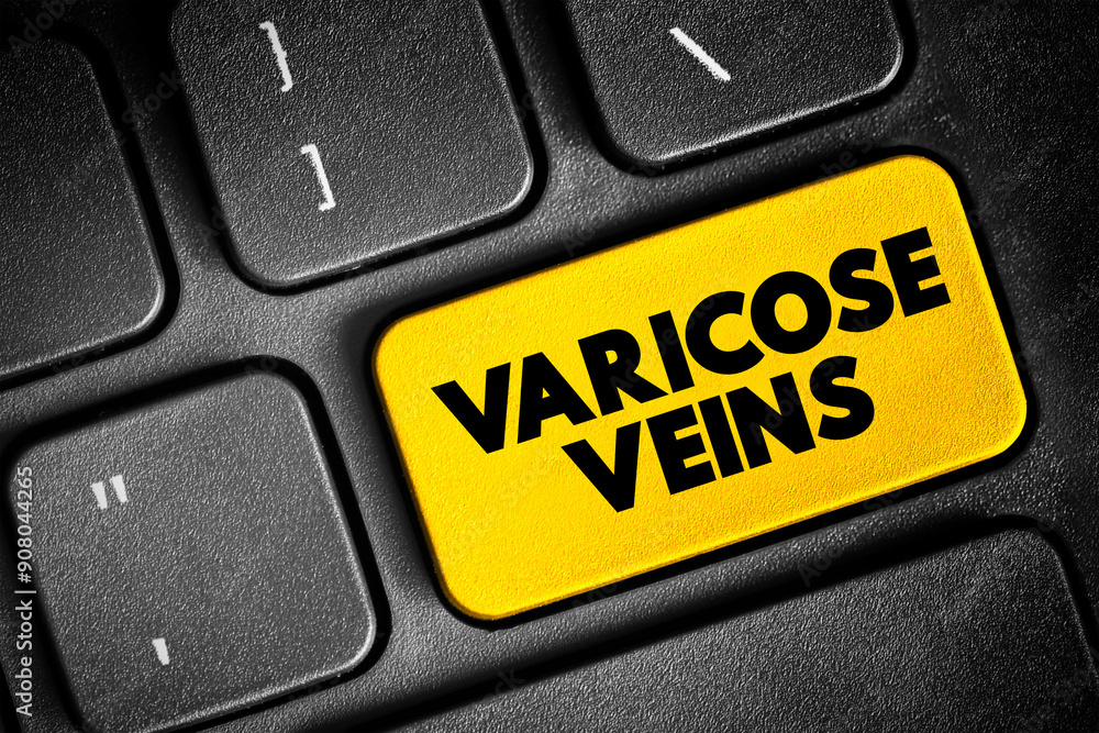 Varicose Veins - swollen and enlarged veins that usually occur on the legs and feet, text concept button on keyboard