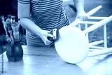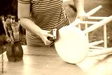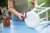 Woman painting a wooden furniture outdoors, an eco-friendly re-use business.