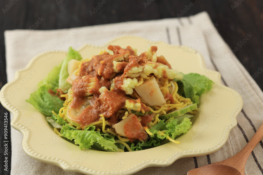 Rujak Juhi, Shredded Cuttlefish Topping Vegetable Salad from Jakarta, Indonesia.