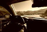 Driving offroad car on high elevation mountains