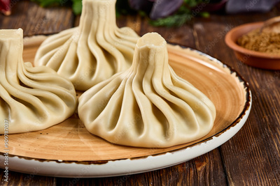 Traditional Georgian Khinkali Dumplings on a Rustic Plate
