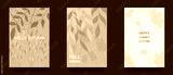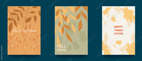 Autumn abstract poster in modern hipster style. Autumn leaves, berries, spots. Trendy modern art with autumn elements. Sale template.