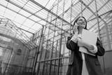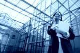 Confident Businesswoman talking on the phone while holding documents in a modern office setting