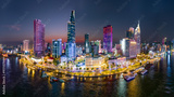 Sunset on Ho Chi Minh City center, Vietnam. Photo taken on May 2024.