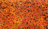Autumn leaves texture background. bright colorful orange-red leaves deciduous bush close up. foliage of ornamental garden shrub Dogwood, Cotoneaster lucidus (Hedge Cotoneaster). full frame
