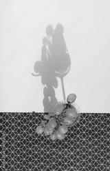 Creative scene yellow grapes in a wine glass on sunny day. Summer fruits, drinks and shadow on beige background. Flat lay.