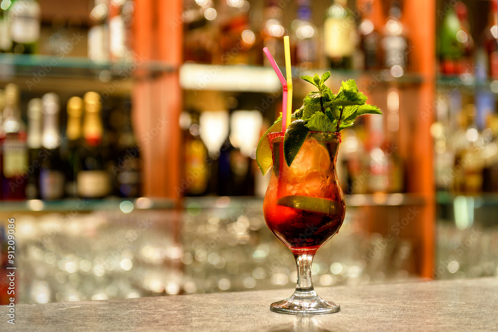 Cocktail in bar background