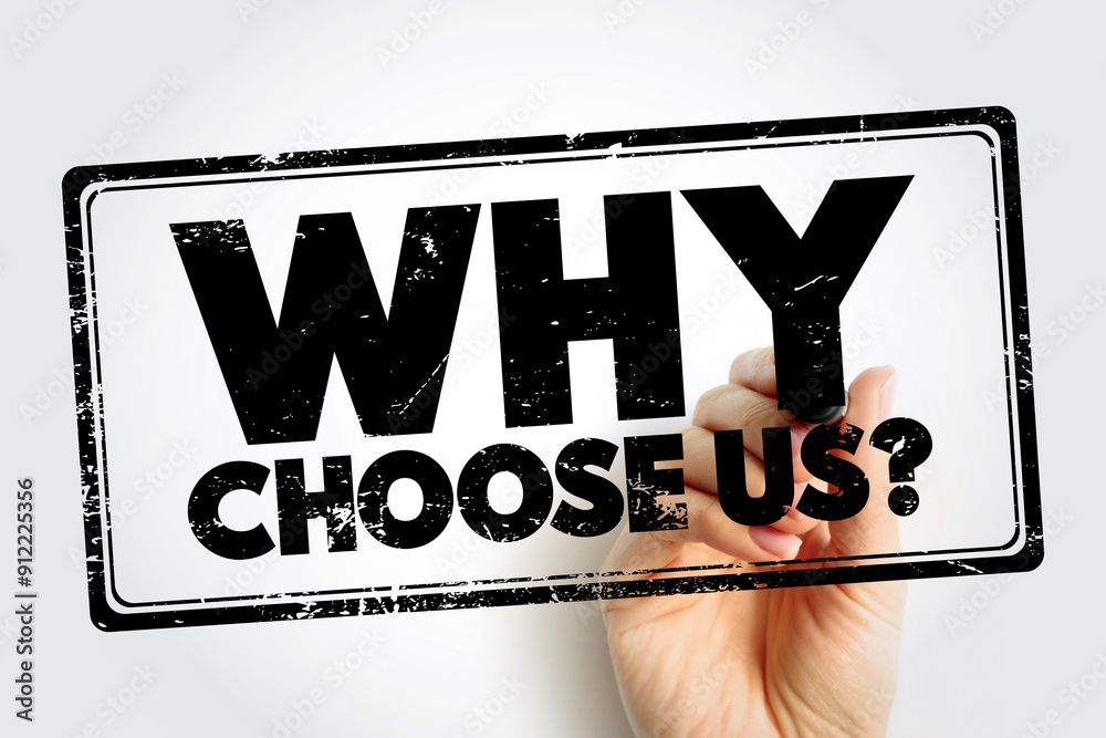 Why Choose Us Question text stamp, concept background