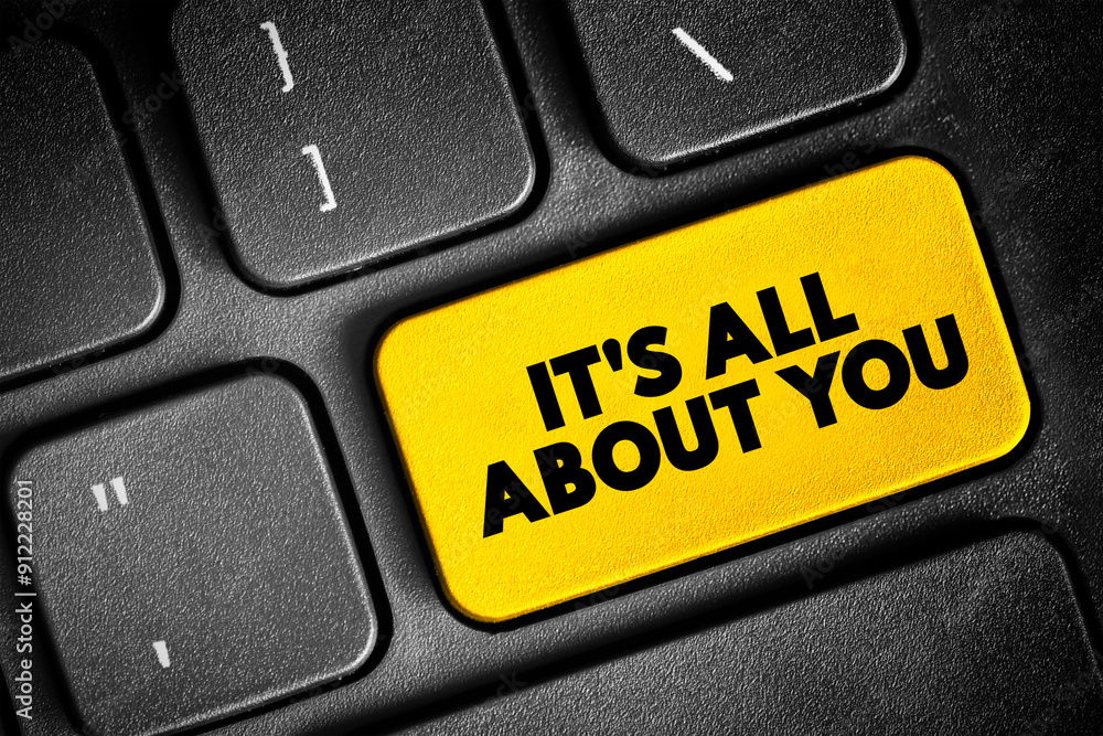 It's All About You text button on keyboard, concept background