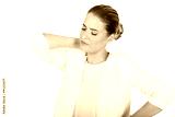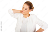 Businesswoman having huge neck pain