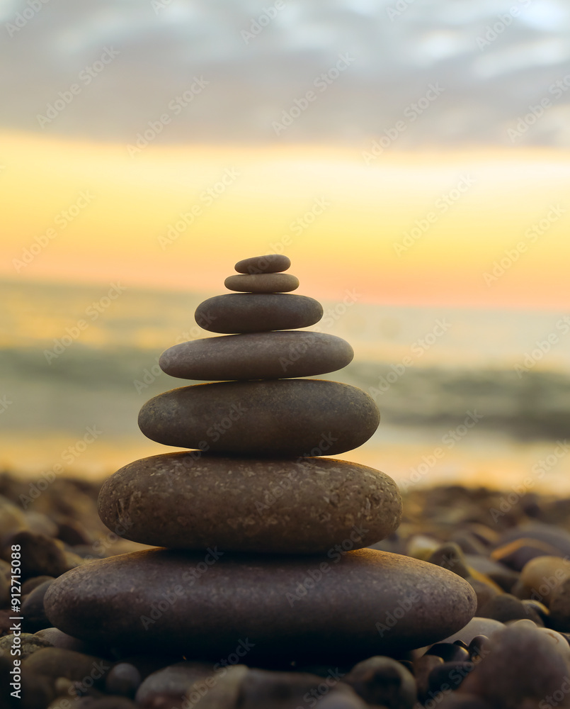 Zen concept. The object of the stones on the beach at sunset. Harmony, Meditation. Zen stones. stones on the beach on sundown. Black sea Batumi, Sakartvelo.