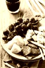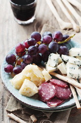 Antipasto with cheese, sausage and grape