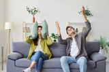 Annoyed couple at home, covering ears with pillow, unhappy irritated family trying ignoring loud noise sound, feeling stressed of noisy disturbing neighbors, loud music, hating hearing sound of works