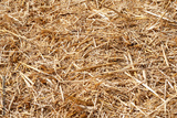 Hay texture. Close-up of a pile of golden yellow hay. Straw for background. Hay is tightly bound into a bale