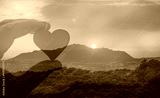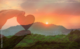 Hand holding heart up to the sunset enjoying life and summer, nature, happiness. Location Diamond Head, Oahu ,Hawaii