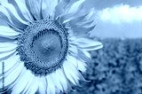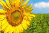 Sunflower blooming in the green field with blue sky