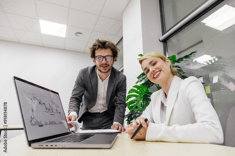 A diverse group of young professionals collaborates in a dynamic brainstorming session. Perfect for themes of teamwork, strategy planning, and startup collaboration in a modern office setting.
