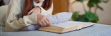 Young asian women in sweater lying on comfortable couch to enjoying and happiness with reading literature book while relaxation and doing activity to spending time with slow life lifestyle at home