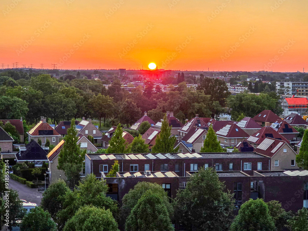 Sunset over a residential area in Enschede, Netherlands