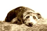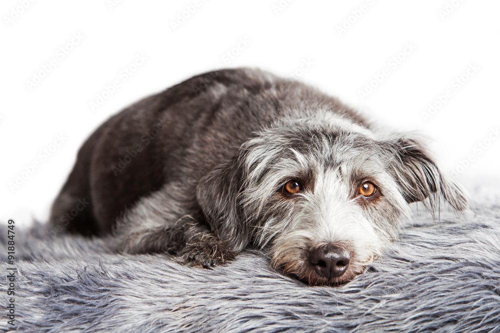 Large Terrier Crossbreed Dog Laying on Fur Rug