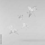 Beautiful bright colorful autumn leaves falling in the air isolated on blue background. Zero gravity or levitation autumn conception. High resolution image.