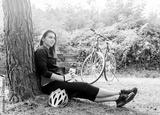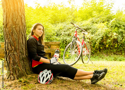 Happy Young Woman riding bicycle outside. Healthy Lifestyle.