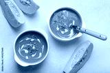 Creamy pumpkin soup bowls on warm yellow beige background with parsley and pink pepper, a cozy autumn meal option