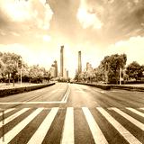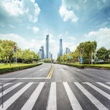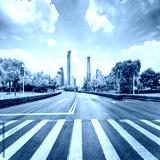 empty road with zebra crossing and skyscrapers