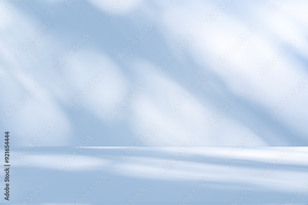 Wall interior background, studio and backdrops show products.with shadow from window color white and blue. background for text insertion and presentation product