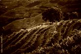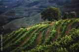 Sunlit vineyards with rows of grapevines stretching across sun-drenched hills, creating a vibrant and scenic landscape.