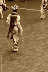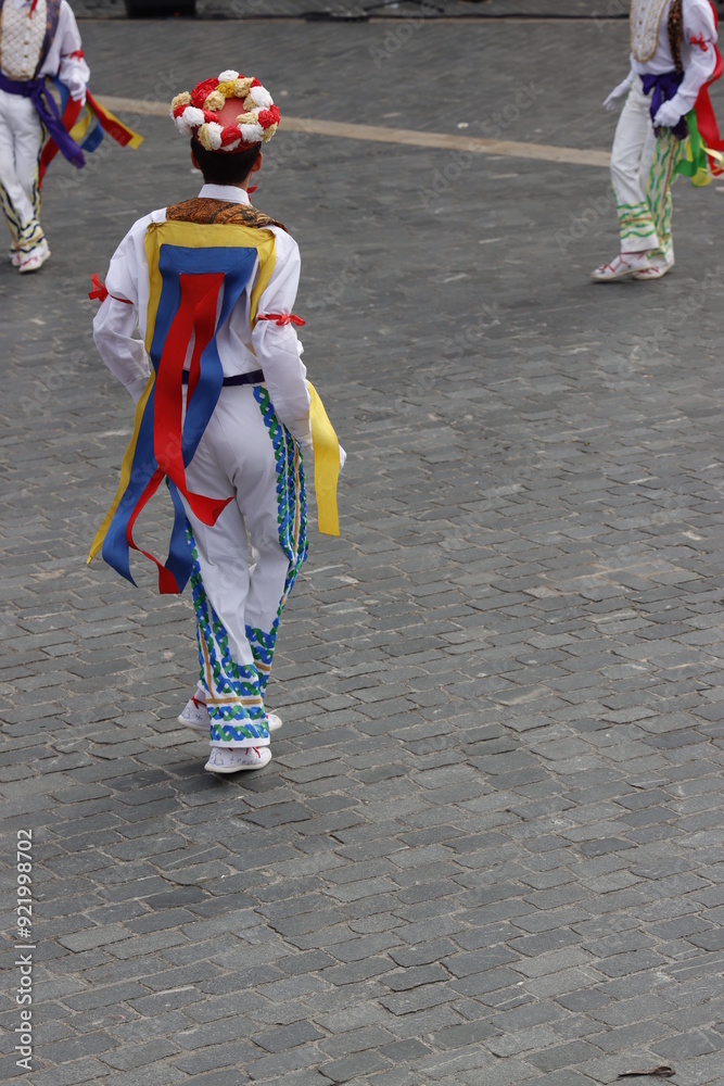 Folk dancers from the Basque Country during a performance in an outdoor festival in Bilbao, Spain