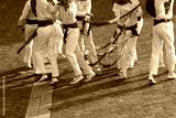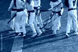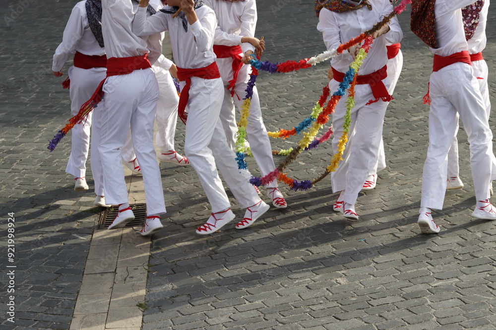 Folk dancers from the Basque Country during a performance in an outdoor festival in Bilbao, Spain