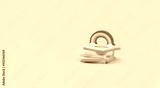 paper note stickers and rainbow eraser shape on abstract pink background. Creativity art concept. kawaii minimal style. copy space