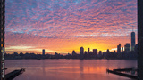 Colorful dreamy sunrise panorama of Manhattan from New Jersey side in New York City
