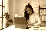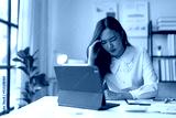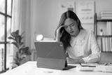 Asian businesswoman or female office worker who is angry, irritated, stressed over a failed job. and crumpled documents in her hands at her desk. Depression overworked Office Syndrome.