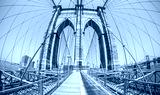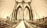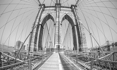 Brooklyn Bridge in fisheye lens, monochromatic style, USA.