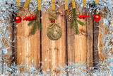 Christmas background with snowflakes on wood. Copy space