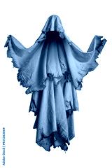 Floating scary white fabric ghosts for Halloween parties to celebrate the night holiday. Creepy ghost character. Can be used in screen mode for a transparent effect.