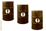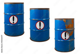 Blue barrel with biohazard warning exclamation mark, toxic waste. The symbol indicates that hazardous products death or poisoning. Rusty dangerous barrel with pathogens, toxins on isolated background