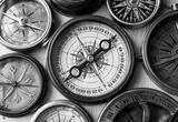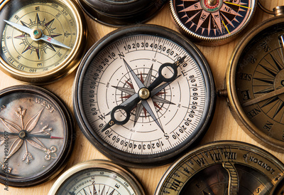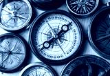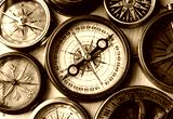 Old compass on vintage wood