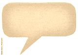 Blank cut out brown corrugated cardboard paper speech bubble of rectangular shape with copy space for text on transparent or white background