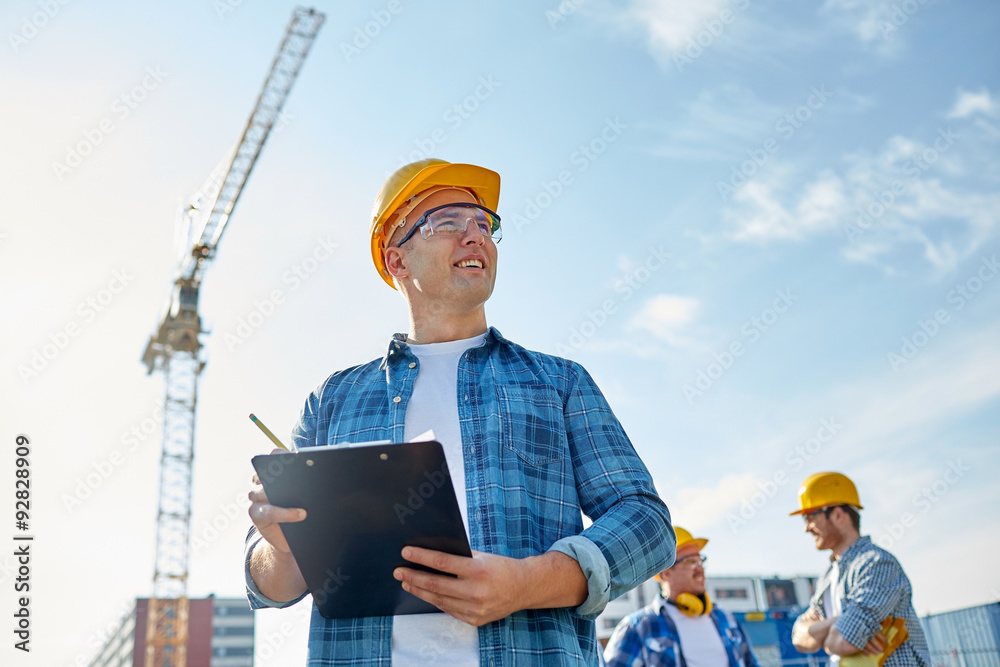 builder in hardhat with clipboard at construction