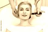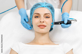 A mature woman undergoes a revitalizing facial procedure in a high-end beauty salon. The cosmetologist expertly uses a hydropeeling device to cleanse and rejuvenate her skin, showcasing advanced skinc