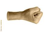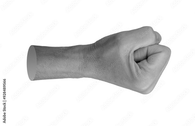 Clenched fingers, knuckle, fist aside, side view, isolated on white background..