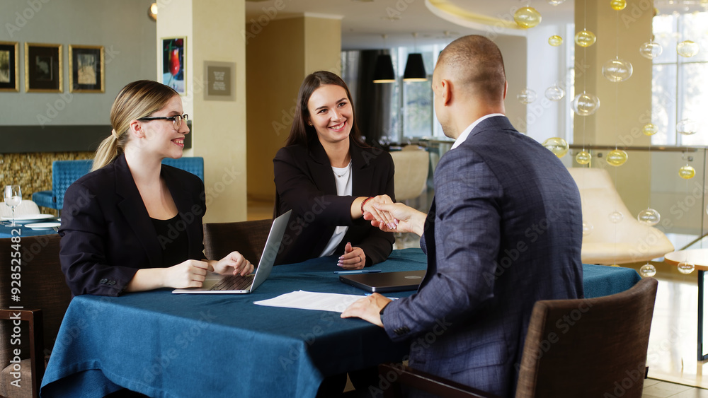 A team of business statisticians analyzes market segments using sales statistics presented in infographics. Trading experts use data charts on paper in the office lobby