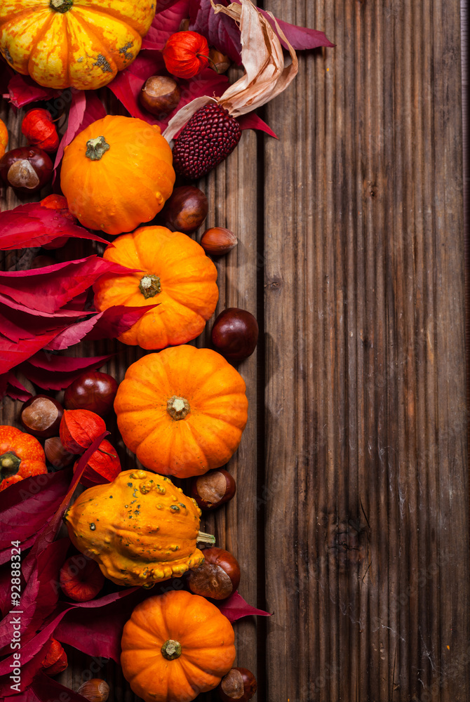 Autumn border with pumpkins and copy space