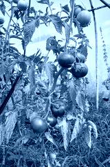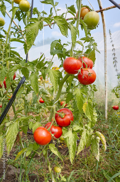 Organic tomatoes in a greenhouse, selective focus.
