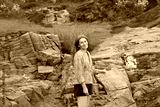 Woman on stone beach. Woman by the fjord in Norway, Oslo.