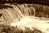 Cherry salmon jumping out of the bubbling water of a 2.5-meter-high waterfall called Sakura fall in the eastern Hokkaido Japan.