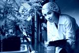 female scientist looking and checking hemp or cannabis plants in the greenhouse